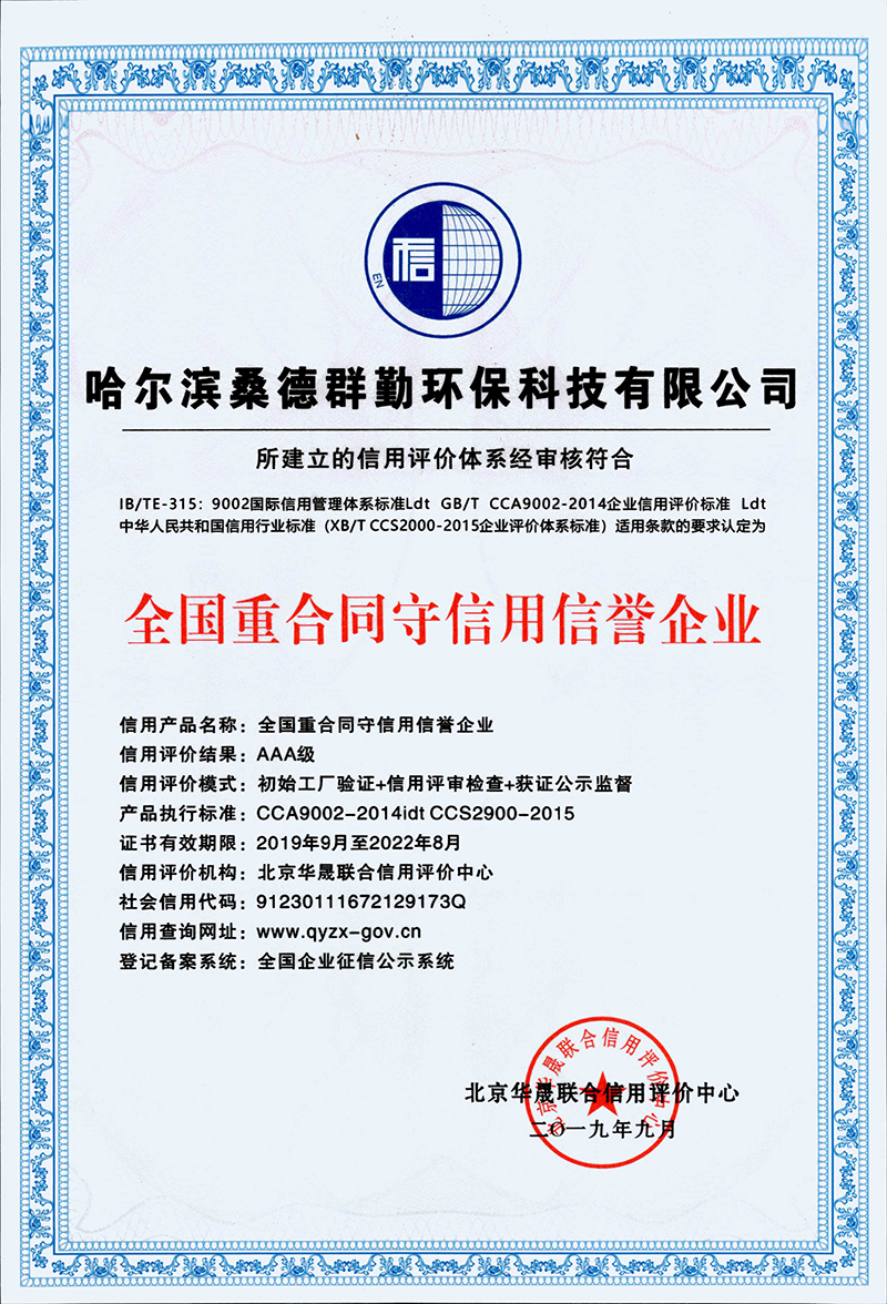 全國重合同守信用信譽企業